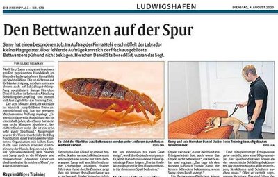 Daniel Staiber mit Bettwanzenspürhund Samy in der RHEINPFALZ
