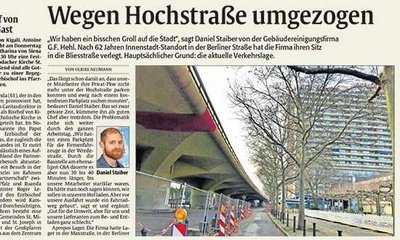 Frühjahrsputz bei der Hehl GmbH & Co. KG. Nach 62 Jahren verlegt die Firma Hehl ihren Standort hinaus aus der Ludwigshafener Innenstadt. Von der Berliner Straße, in die Bliesstraße 5. Auch das Lager in der Maxstraße, sowie mehrere Parkplätze in der Wredestraße sind betroffen. Der Grund liegt hauptsächlich an der aktuell schlechten Verkehrslage, bzw. in den Problemen mit der Hochstraße